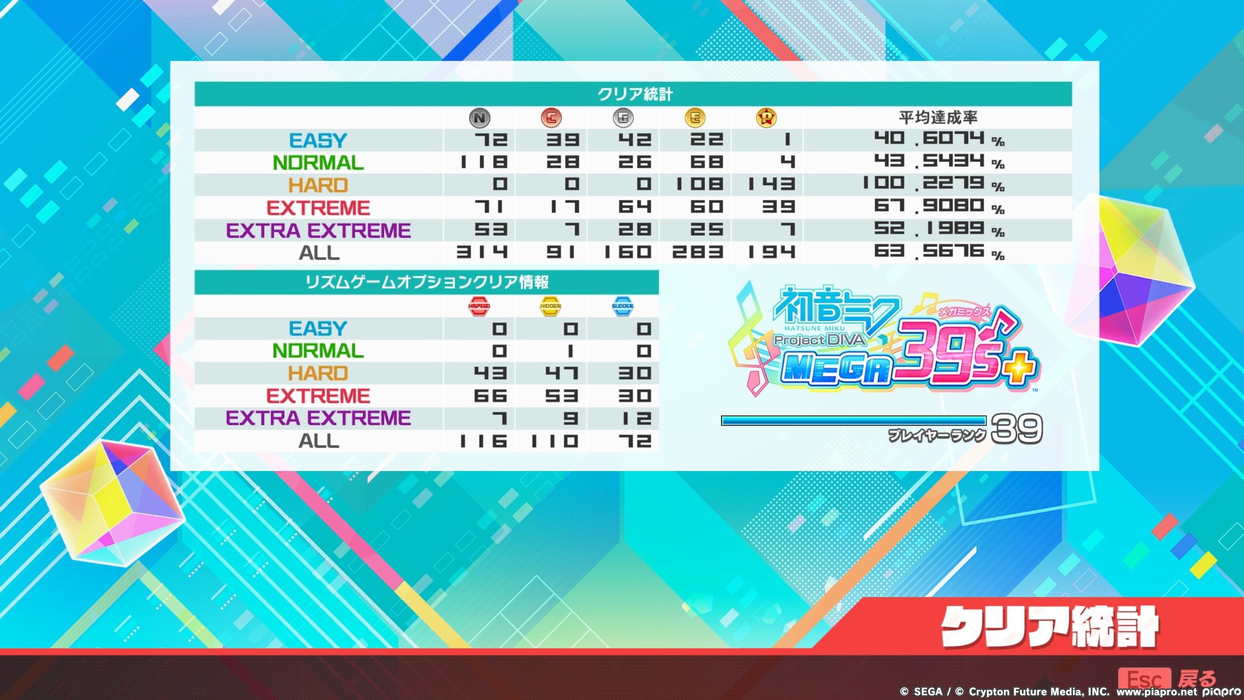 HARDの達成率は、100.00% → 100.22% まで上昇。PERFECTを9個増やしてやっとこれだけ。